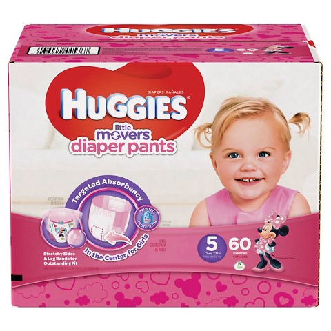 Huggies Little Movers Diaper Pants for Girls Size 5 (60 Count)